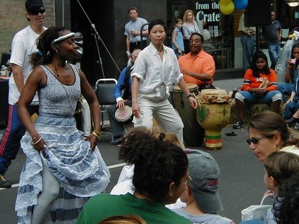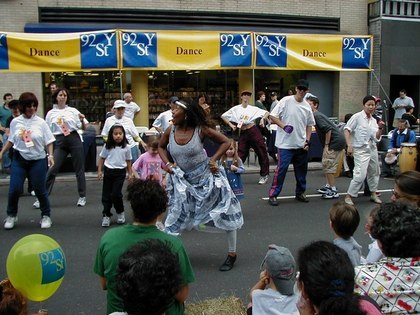 The 92nd Street Y (New York City, New York) puts on a street festival every year. This year they had free dance lessons in Line Dancing, Swing, Argentine Tango, Ballroom (Foxtrot), Salsa, and Afro-Caribbean Dance, among others. They also had dance performances, including a performance by cast members from Swing!, the Broadway musical. If you didn't want to dance, there was plenty else to do, including pony rides.