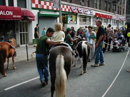 There were consistently ten people or more who took each dance lesson. The audience was very appreciative. Quite a way to start a dance career. I danced Swing with a 92nd Street Y volunteer, Argentine Tango with an Argentine Tango aficionado, and Foxtrot with a person who studies Flamenco and researches dance history. I took some pictures of the Carribean dance class (and the ponies).