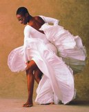Cry (1971) For all black women everywhere, especially our mothers: Choreography by Alvin Ailey, Music by Alice Coltrane, Laura Nyro, and Chuck Griffin, Costume by A. Christina Giannini, Lighting by Chenault Spence, Performed by Dwana Adiaha Smallwood. Ms. Smallwood, who exuberantly danced a leading role in Caravan (See Review), carried the torch of Judith Jamison (now Artistic Director) well, for whom this role was specifically choreographed by Alvin Ailey in 1971. Ms. Smallwood exemplified the struggle from sorrow and pain to joy and freedom, with her amazingly flexible posturing techniques, including the Martha Graham contraction-releases from the interior of the torso (See Interview, Erica Dankmeyer). Ms. Smallwood utilized her brilliantly designed, long, ruffled white dress, with an expansive length of white material, which became a turban, a slave-like restraint, or finally a swing. Disturbing music and lyrics, referring to drugs and death on a train, were followed by joyful release and the sensation of survival. Ms. Smallwood was a commanding, charismatic presence onstage, alone, yet powerfully assuming her generous space. Kudos to Dwana Adiaha Smallwood and to Judith Jamison, who first danced this role. I would love to see an original film of Ms. Jamison in Cry.