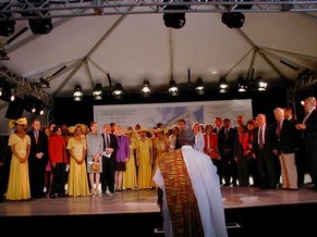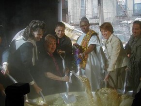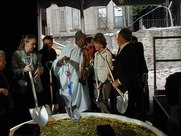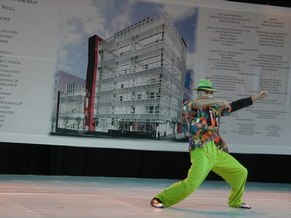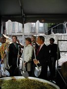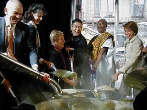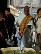 The ceremony, held in a tent on the site, was led off by Junior Division students performing "Breaking Ground", exuberantly. Speeches were given by Judith Jamison, Ailey's artistic director, Joan Weill, Chairman of Ailey's board, and Mayor Bloomberg. They each took shovels and dug up a symbolic shovel's worth of earth. The earth had been symbolically mixed with gold glitter, presumably to bring good fortune on the project. It was a nice touch. After all, what dance event is complete without glitter? It's good to know that the ballroom world is not the only part of the dance solar system that thinks this way.