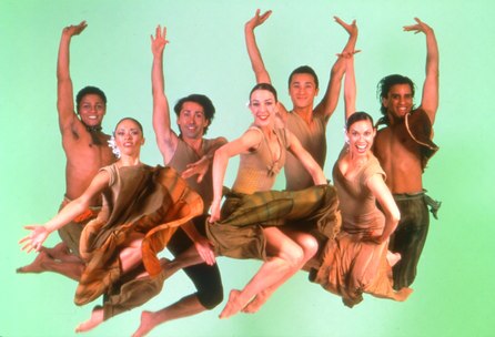 Guajira (1999): Choreography by Pedro Ruiz, Music by Los Activos, Conjunto Cespedes and Vitier, Costume Design by Anne Hould-Ward, Lighting Design by Jeff Segel, Performed by the Company. Pedro Ruiz is a genius. (See Ruiz Interview). Against a colorful, earthy backdrop, the silhouettes of arms and hands, like lentil beans growing our of clay pots, rise up from the floor of the stage, as people unfold, physically and visually, with the stage lights gradually brightening, to the pulsating, steady beats of Cuban rhythms. Kudos to Jeff Segal for these sophisticated lighting effects. One hears quenas (See Binelli/Ferman Review) and Double Bass and Congas and palmeras (See Flamenco at Xunta), as the dancers perform the rituals of the people of the countryside in the farms outside Havana. Female dancers wash cloths in a symbolic river and male dancers carry the women atop their shoulders, as if they are artifacts, totem poles, in this historical and cultural tribute to Mr. Ruiz' homeland. Kudos to Ann Hould-Ward for the flowing, earthy costumes, which are perfectly suited to these Cuban rituals and rhythms. Noteworthy performances were presented by Natalia Alonso, Jennifer DePalo, Jae-Man Joo, and Chan Koo Paik.