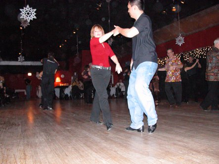If you are looking for friendly people with whom to dance West Coast Swing, plus some Two-Step (both kinds), Hustle and a smattering of Waltz, you should check out the Chicago Rebels Swing Dance Club. Everyone was very welcoming. Most of the people were Chicago locals, but at least one person came from as far away as Madison, Wisconsin. The evening started at about 8 pm and went to Midnight. Refreshments were available from a vending machine in the back. The admission was $12.