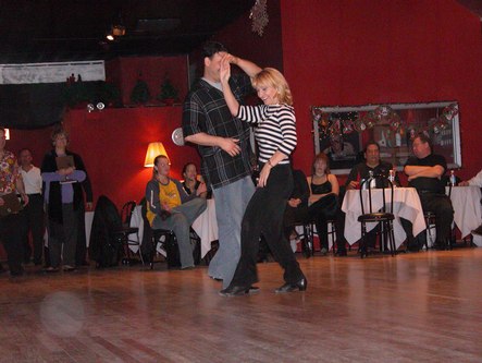 The Chicago Rebels practice an innovative form of the Jack and Jill. At each of their regular parties members who are interested in competing pay $5 to enter the contest in one of three levels. Each person is scored. Entrants in the contest earn points that add up over the year. At their annual anniversary party, the dancers with the most points win prizes. The club clearly takes the contest seriously, but still keeps it fun. I have strong opinions on the issue of whether and how dance can be a sport. I think the Chicago Rebels may have found an appropriate balance and that their approach deserves further study.