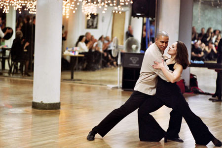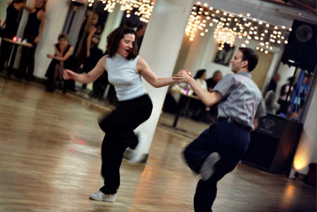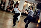 About three-quarters of the way through the evening, the lights were raised, and the DJ stopped and we all crammed along the walls of the studio to watch instructors and students perform. It was time to showcase the hard work they'd put forth throughout the year. There were several group performances (west coast swing, hip-hop, lindy, and salsa) and several couple performances (tango, two-step, and waltz). Some dancers were professionals, some had just competed at the U.S. Open dance competition, and some were taking performance classes for the fun of it. But all of them were energetic and a joy to watch. They also made me want to spice up my salsa and put a bit more spring in my swing. In short, the performances made me want to take more classes and get back to Dance Manhattan soon.