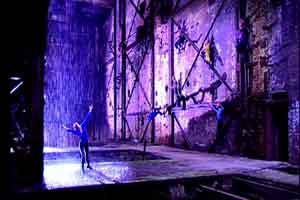 Hit and Run is a coherent work of modern dance with brushstrokes of ballet, freestyle, swing and broadway - they used a fedora instead of a bowler, but close enough. The film presents a sumptuous site-specific dance with modulated pacing. The dance contains intimations of story without narrative. The amount of story it does contain is just enough to be useful as a tease to help the audience see the dancers as people. The dance in the film, which was originally staged in one space, and then restaged in another, represents the third incarnation: this time staged specifically both for the chosen location - a gloriously lit semi-abandoned Irish factory, and for film (rather than being a film of a dance on a stage). The editing did a great job of making sense of the movement. In one of my favorite moments in the film, the dancers command the spotlight with a clap of their hands so they can show off, only to have the spotlight stolen away again, repeatedly. All of the dancers were incredible, both individually and as an ensemble. This is a high energy work that comes as close as humanly possible to being a perfect full-length work of non-narrative modern dance crafted specifically for film. Choreography by David Bolger; directed by John Comiskey; produced by Siobhan Bourke, Kate Lennon and Bridget Webster; Music composed by Bell Helicopter. The dancers included Muirne Bloomer, Daryn Crosbie, Justine Doswell, Benjamin Dunks, Adam Dyer, Eric Lacey, Simone Litchfield and Liz Roche. For more information, go to www.hitandrun-thefilm.com. Ireland, 56 minutes, 2002.