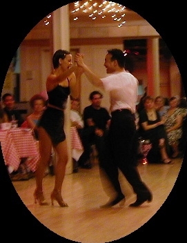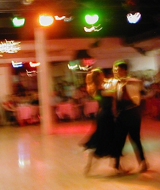 Note how both partners have ecstatic expressions on their faces. These are not smiles they bought at the Seven-Eleven and then pasted on with spirit gum. As such, this photograph makes a point about border crossing. Samba is a dance of Joy. Cynthia and Joe are clearly feeling it while dancing their International Samba. International Samba is a different set of motions done to the same music as Brazilian Samba, but is just as capable of eliciting Joy.