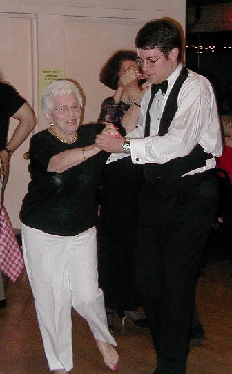 - Anyone can dance. My grandmother learned to dance from a teacher named Sharkey (when he wasn't teaching dance, he was at his real job - supervising the painting of the George Washington Bridge). Here she is dancing a Foxtrot with me. Her shoes were coming loose, so she danced without them. Just be glad you don't have to compete against her.