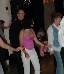 Note how both partners have ecstatic expressions on their faces. These are not smiles they bought at the Seven-Eleven and then pasted on with spirit gum. As such, this photograph makes a point about border crossing. Samba is a dance of Joy. Cynthia and Joe are clearly feeling it while dancing their International Samba. International Samba is a different set of motions done to the same music as Brazilian Samba, but is just as capable of eliciting Joy.