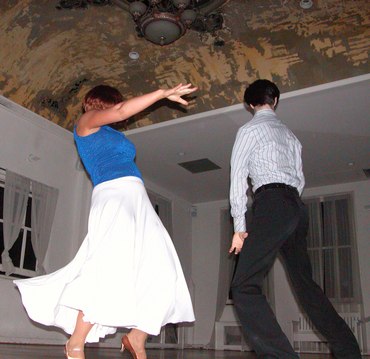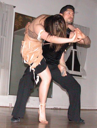 The most notable performance of the evening was Anya and Benito Garcia's innovative routine that combined Rumba, African Dance and Modern Dance. I have seen Salsa combined with Argentine Tango, Argentine Tango combined with Modern Dance, Argentine Tango combined with West Coast Swing, and I have occasionally danced West Coast Swing patterns to Salsa, but this was new. The hybrid choreography felt like an integrated whole. It felt like a significant breakthrough towards the unity of dance. The dancing was energetic. The room was warmer at the end of the routine than it was at the start, but that always happens when Anya dances. Anya and Benito also danced a Cha-cha by Perez Prado.