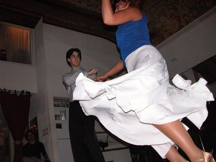 Dance Times Square holds a monthly guest night with performances by teachers and students, not to mention lots of general dancing. It takes place in a welcoming studio in the heart of Times Square. The parties there are fun and the performances are first rate. Tonight was no exception.