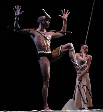 Errand into the Maze takes as its inspiration the myth of Ariadne and the Minotaur. Martha Graham took this Greek myth as her symbol of the conquering of fear. There is an errand into the maze of the heart's darkness in order to face and do battle with the Creature of Fear. There is the accomplishment of the errand, the instant of triumph, and the emergence from the dark.