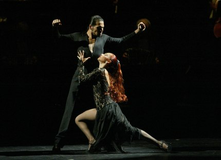 The two additional scenes in which Mr. Torres was featured were among the highlights of the evening. Romance entre el BandoneÛn y mi Alma was a ballet-infused pas de deux in which each lift and line was more stunning than the next. Here, Torres was partnered by the exquisite Guillermina Quiroga, who, wrapped in beautiful, body-hugging lace (in contrast to the more traditional costumes worn by the dancers in the other pieces), was captivating to behold. Later, Torres performed A Evaristo CarrÏego, with Gavito's former partner, Marcela Duran. This segment, and indeed Duran herself, exuded the kind of insatiable quest for romantic and/or sexual fulfillment so frequently embodied by the dance.