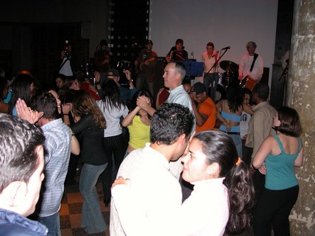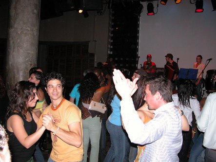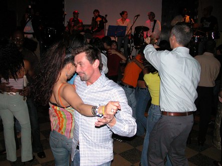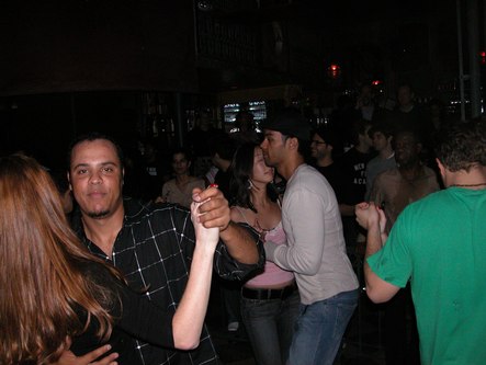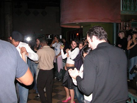 FORR² is a fun Brazilian partner dance that looks a little like Salsa with some Swing thrown in, but feels like Samba. It is often danced in a close embrace. The music by Rob Curto and ForrŪ For All was compelling. They tended to blend one song into the next in a way that kept the dancers on the floor. During the first set I danced non-stop for what must have been a half an hour with a woman who claimed that this was her first time. Either she was being modest, or she is a natural. Our connection was amazing, such that I will be scanning the crowd the next time SOBs throws a ForrŪ party (plus she kissed me on the cheek as she was leaving). That next time will be the last Sunday in January 2006. SOBs' ForrŪ party used to be a weekly event, but it is now going to be a monthly. ForrŪ may be the dance of Brazilian taxi drivers, but where would New York City be without taxi drivers, so come out and support a great dance, music and party and maybe SOBs will consider hosting the fun more often. As my recent experience proved, you don't need to be Brazilian to find dance partners at SOBs' ForrŪ party.