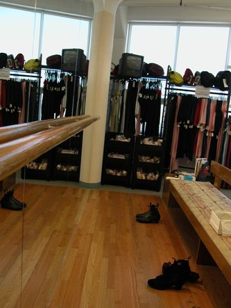 A wooden floor and a ballet barre to try out the shoes