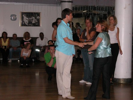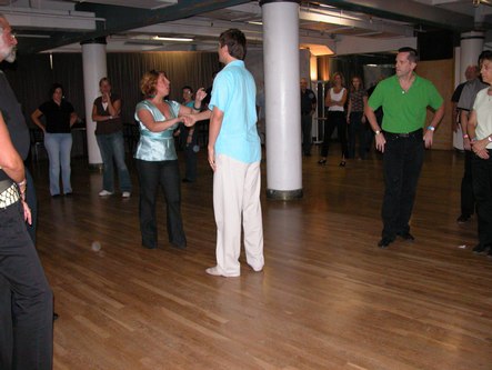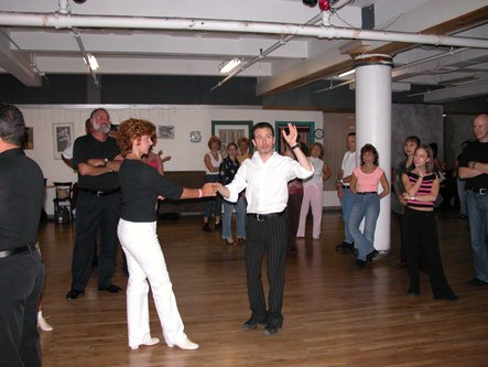 The Gotham Swing Club held its annual Free Day at Dance Manhattan. This is a day of lessons, a community meeting and a party that is free to members of New York City's West Coast Swing club. Erik Novoa, Hazel and Tybalt Ulricht and John Festa all taught lessons. Among other moves, we learned how to lead a reverse whip. The community meeting was full of good ideas for how to get more people to West Coast Swing events, including new ways to publicize the Gotham Swing Club's Gotham Gatherings, where club members will get together at a different existing event each month. The party, which started at 9 pm and went until late, was a lot of fun.