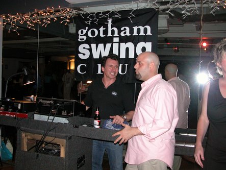 John Festa DJs while talking to Andrew D'Angelo, Dance Manhattan's manager