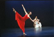 Snezana Adjanski as The Woman in Red, Jeffrey Smith and Ritza Mavrokefalou as The Couple in White in the Martha Graham School Ensemble's presentation of Martha Graham's "Diversion of Angels"