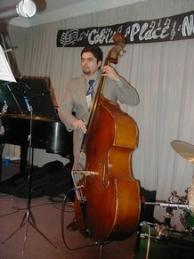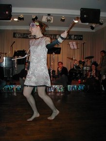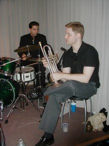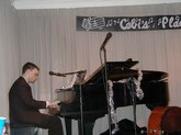 December 7, 2002 Ian Kane, Piano Yanko Valdes, Bass Justin Heinz, Percussion Guest Trumpet IKane1771@aol.com at Cobi's Place, 158 West 48th Street, NYC 4th Floor Appearing with Oh De Twirlette A Group of Female Baton Twirlers Mary Jane Hunter Susan Kosor Urania Mylonas Veronica Dougherty Notes and Photos by Dr. Roberta E. Zlokower Ian Kane's Stride Trio is a newly formed group led by composer and pianist, Ian Kane. Completing the trio are bassist, Yanko Valdes, and bongo player/multi-percussionist, Justin Heinz, both of whom are classically trained. The trio mixes elements of 1920's Harlem stride piano playing and Tin Pan Alley songwriting with modern-day subject matter and oblique crooning. The resulting sound is exuberant yet cynical, and brings to mind crosses between Gershwin and Ben Folds 5, or J.P. Johnson (one of the originators of stride) and the spirit of the Ramones.