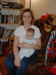 March 3, 2003, with Cecilia Saia and her new baby boy, Isaac Saia-Gluck, in her Upper West Side apartment, decorated with stuffed animals and baby bouncers, to welcome this exciting time in the midst of a career as a world-renowned Argentine Tango Performer and Teacher. Cecilia teaches Tango at DanceSport Latin and Ballroom Dance Studio at 60th Street and Broadway, NYC, 212.307.1111. Cecilia widely performs with Ronen Khayat of DanceSport and is known, in her own right, as one of the most sensational Tango artists in the world. She has a hot, sizzling style and melts her partner and the audience, as they watch her dancing, which is sultry, sensual, and exciting. Isaac's style is calm and content. Cecilia Saia is the subject of this Inside Perspective.