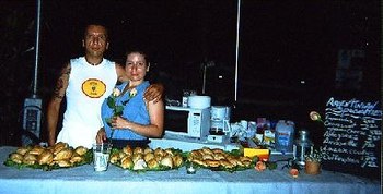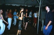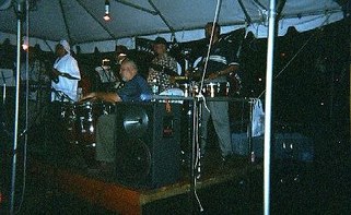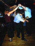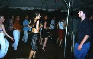 July 3, 2002, at the Chelsea Pier, 23rd Street and the Hudson River, with the SPICE organizers, Reba Perez and Trey Parker, late in the evening, after Tango and Salsa lessons, expertly presented by Paul Pellicoro and Eleny Fotinos (Tango) and Franklin Ayala and Amy Garcia (Salsa) from DanceSport Dance Studio, and after rousing ovations for a passionate Tango performance by Cecelia Saia and Ronen Khayat (DanceSport) and a pulsating Salsa performance by Franklin Ayala and Amy Garcia. The Tango Band, this night, is Tango Porteno, and the Salsa Band this night is Grupo Caribe.