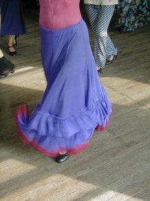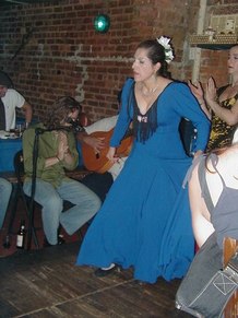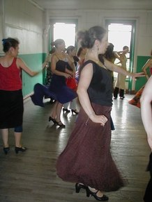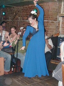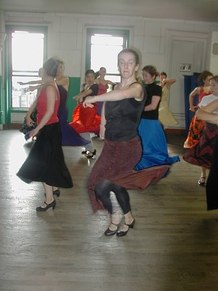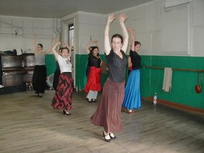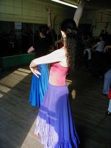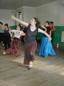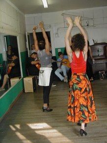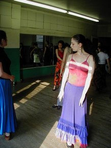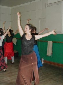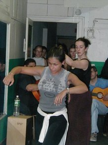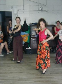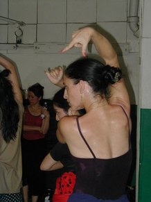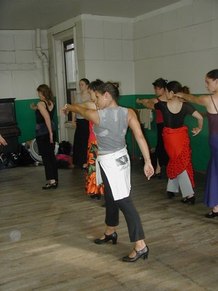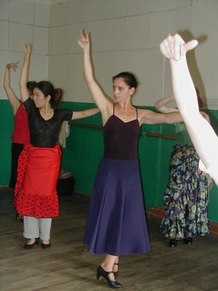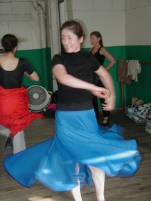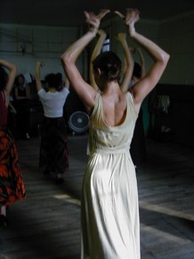 GR - This was an advanced class in Flamenco technique. It includes arm work, footwork, and different Palo's (rhythms). We are working on choreography, too. I put some of Neli's steps and techniques into my dances, because Neli uses strong rhythms and quality of movement. She makes you go to the edge, with sharpness.