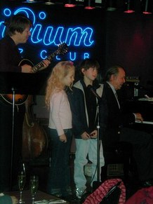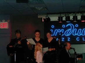 The Bob Dorough Trio was thoroughly delightful, and their appeal to children, with several educational ballads, such as Conjunction Function, Electricity, and Three is a Magic Number. Dorough sings, in Arkansas style, and sometimes talks, as asides to his audience. He knew names of many guests and seemed to have a regular following. The Trio also played for the adults, and they invited guest singers from the audience to join the performance. In fact, two children, ages 7 and 8, both of whom have appeared onstage at the Met Opera, also sang with the improvisational groups. The Iridium waitresses, many of whom also work upstairs at Ellen's Stardust Diner, also owned by Irving, Ellen, and Ron Sturm, have beautiful singing voices and perform, while waiting tables, both upstairs and downstairs, an engaging diversion.
