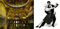 On this night, the elegant dining room, in which our group, each morning, joined all the Pera Palas guests for a complimentary, sumptuous buffet breakfast, of olives, cheeses, melons, meats, nuts, dried and fresh fruits, eggs, pancakes, breads, pastries, juices, coffee, tea, etc., turned into a ballroom floor! Again, the luxurious chandeliers, the enormous parquet dance floor, a DJ, and the most fantastic Turkish and Argentinean Tango music one could wish for, created an ambiance fit for a King or Duke, in the style that only Pera Palas can create. The little round tables and the fully-equipped bar lent just the right touch to make all the Baila Tango festival participants feel ever so special.