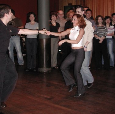 Jack Rose is one of the best places to go for West Coast Swing in New York City (771 8th Avenue and 47th Street in NYC, 212-247-7518). Most Wednesday nights starting at 9 pm on the second floor you can find some of the best West Coast Swing dancers in the greater New York Metro area. Beginners are always welcome too. The food is good and there is always some lively conversation going on at the bar. John Festa, the DJ and organizer, plays an inviting mix of music.