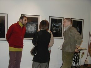 This was my second Opening at Jadite, and I enjoy these events more and more each time. There are dancers, who are involved in promoting this art (See December 12, 2002, Jadite Opening), and the exhibitions are always extremely fascinating. In addition, I have received lovely personal notes, on hand-painted stationary, from Sheila Cappelletti (Dec. 12, 2002 Opening) and Holly Adams (This Opening). Mr. Roland Sainz, Gallery Owner, serves wine and hors d'oeuvres at each Opening, and the guests are always enthusiastic and interesting.