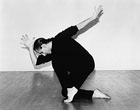 Whisper (1995): Original Sound Score by Ronnie Cusmano, Poetry by Ken Freeman, Performed by Andrew Jannetti, Voices: Kathy Enders, Andrew Jannetti, Glen Loiacono, and Lauren Naslund, Costume by Suzanne Gallo. Jannetti has an intense focus, and this piece was actually disturbing at times. There was whispered poetry in the background, something about the softness of kitten whiskers and other similar images. This dance seemed to be about the nature of love, loss, and death. Jannetti, in a gray unitard, used a whispering motion with his arm and finger, put to his mouth, which was repeated intermittently. For me, this piece was too severe. However, there was a cathartic emotionality, which played against the poetry and allusions of softness.