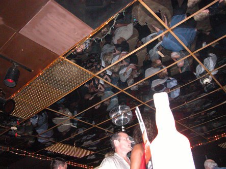 The mirrored ceiling at Johnny's Hideaway reflects the crowded dance floor