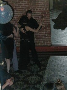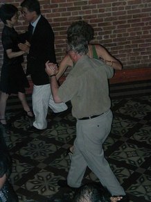 Speaking of crowds, I counted about 20 couples on the floor at most times. This was enough to give the dance floor good energy, but not so many that the people had to restrain their dancing. There were beginners and professionals and others who just love dancing Tango and have been dancing Tango practically all their lives. Rodolfo Windhausen was one such Tanguero. It was his birthday, by the way, so I and everyone else at ExploreDance.com wish him Happy Birthday and a Great Year! And if you haven't done so already, check out his ExploreDance.com column. I can now state, as an eye witness, that Rodolfo can dance as well as he can write. Which is to say he looked very smooth and elegant.