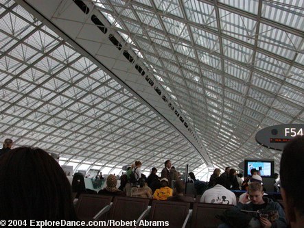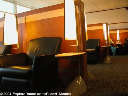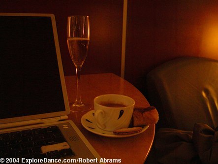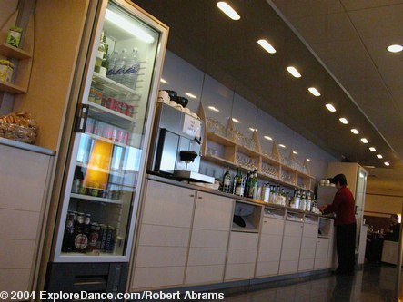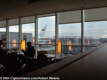 Because I am flying in business class, I was able to use the Air France departure lounge. The lounge is spacious with many comfortable chairs. They provide flavorful finger food (filo dough filled with spinach, cheese or vegetables, and cookies and fruit) and admirably thick coffee, as well as champagne and orange juice. If you want to work (who really wants to, but these days it is hard to escape one's laptop computer) there are desks with convenient electric outlets. It might be possible to connect to the internet too, but I didn't check because when I am going away I have to draw the take the office with me line somewhere. The lounge has the feel of comfort and sophistication that air travel must have had before deregulation turned airplanes into flying buses and airports into a cross between a shopping mall and a blur. You pay for the privilege of business class, but it gives you something to strive for.