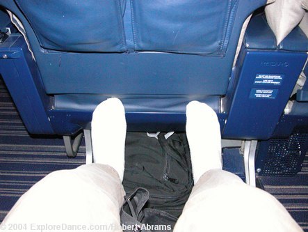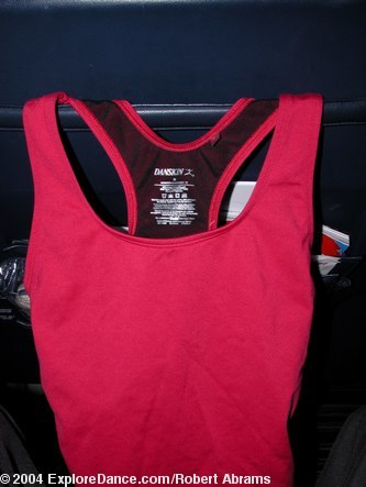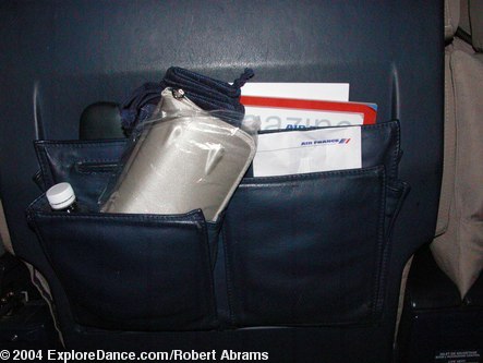 PinkTop on an Air France business class seat (Danskin racer back tank top with inner molded contour cup bra and black piping, style 5277, $38.00)