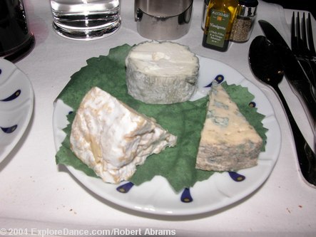 Three kinds of cheese served with dinner on Air France