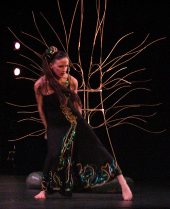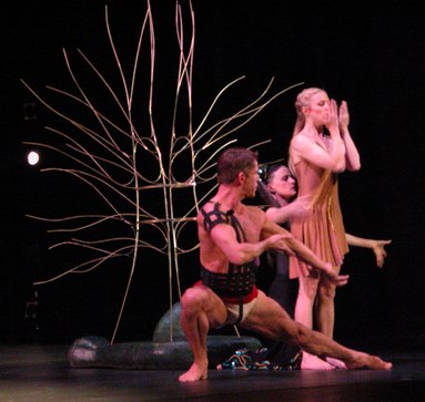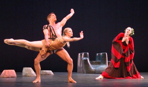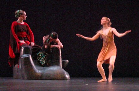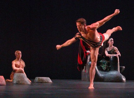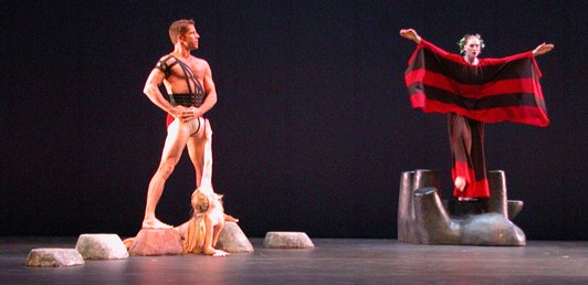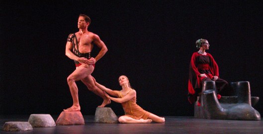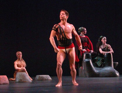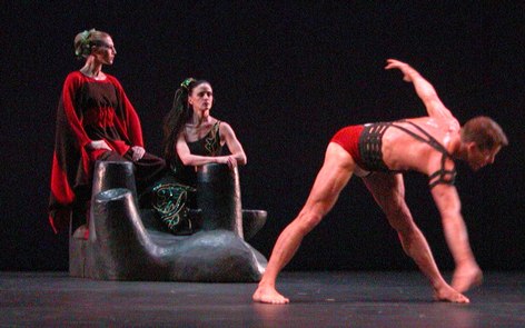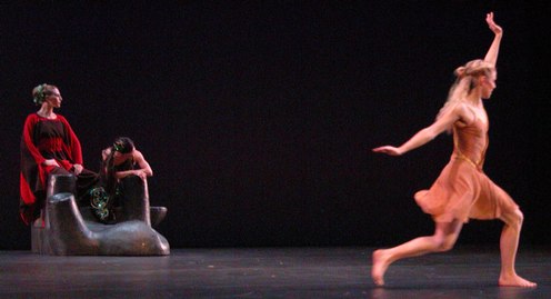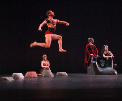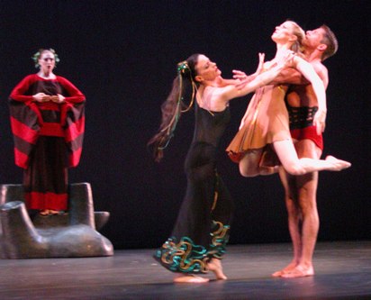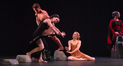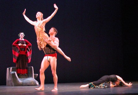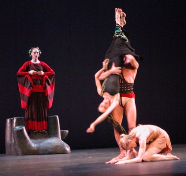 Cave of the Heart is a study of the destructive powers of love, the dark passions that guard the human heart, coiled like a serpent ready to strike when attacked. In the myth, Medea, a sorceress, falls in love with Jason and uses her magical powers to help him gain the Golden Fleece. Sacrificing all that was dear to her, she fled with him to Corinth. But Jason was ambitious and abandoned Medea. Betrayed and exiled, Medea plots a course that will end with the death of her rival, the Princess, and the murder of her own two children. The Chorus, foreseeing the tragedy about to be enacted, tries to prevent it, and suffers its deepest meaning. (Program notes)