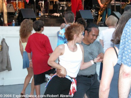 Tammy Halaburda and Ricardo Torres of You Should Be Dancing taught a swing lesson. The Uptown Horns Revue played blues and R&B soul. They were vibrant, irreverent and humorous. Bobby Morales DJed in between sets. All in all it was a perfect evening of dancing to set up the Fourth of July weekend.