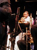 Tonight was a beautiful night at Midsummer Night Swing, with the classical and professional Jazz of Wynton Marsalis and his Lincoln Center Jazz Orchestra. They have been in residence at Lincoln Center for ten years. They played slow, "Get Close" Swing music for dancers, as well as fast pieces by Ellington and other greats. The soloists were well received, and a few are featured here in candid photos. As I am short, I had to point my camera up, on occasion, but the musicians shone in the moonlight.