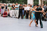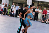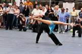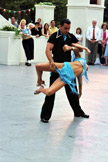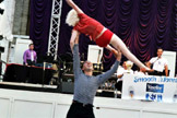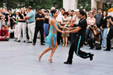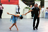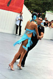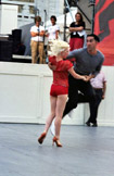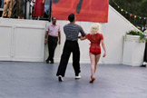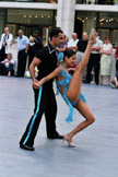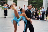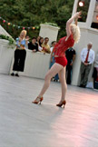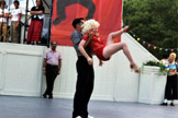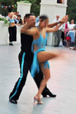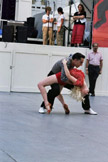 Alex and Monica danced second. They demonstrated great control and sharply defined movements. They exuded confidence. Their choreography was well suited to the competition. They stayed true to Mambo's nature, which is often powerful but reserved, but they also attacked their material with zest to match the Lindy Hop's wild abandon. They danced with passion. Their routine included Argentine tango inflections and a self supported dip.