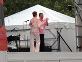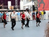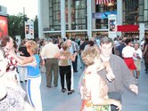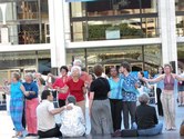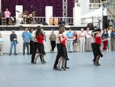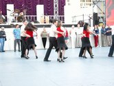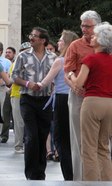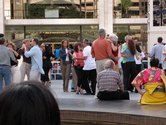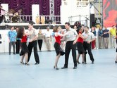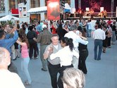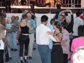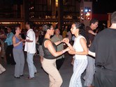 It was a beautiful night on the Plaza at Lincoln Center. Not too hot, not too cold, not too humid. Considering the crazy, record breaking weather we had in June, the weather was just about miraculous. The dancing followed suit. The evening started with a dance lesson taught by Tammy and Ricardo from You Should Be Dancing dance studio (located at 412 8th Avenue - call them at 212-244-0011 for lessons). They gave clear guidance to a full dance floor of students. You can see from the pictures below that most of the students were following the lesson well.