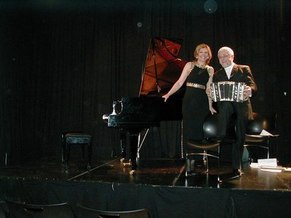 Binelli, on solo bandoneÛn, fills the grandly appointed Consulate Auditorium with passion and pathos, the emotions of Tango, with a slightly dissonant and extremely fascinating sound. His endings are crisp and percussive. He opens to full length, over his bent knee, the entire Bandoneon, to give the listener a fully satisfying sensation. This is a musician of emotional depth, an extraordinary capacity to draw the audience in and suspend them in the moment of musical passion. Ferman, in duos, compliments either Binelli or Mendolas, and, in solos, captivates the audience with her poise, her own passion, and her serious, professional style, which is interchangeable with her engaging commentary and humor. My favorite Piazzolla piece, Oblivion, of which I have several interpretations, including Gidon Kremer, on violin (See Kremer Review), so moved the audience, that we found ourselves stretched toward the brilliantly black lacquered Yamaha, as if the umbilical cord of Tango tightly transported us to another time, another place. Mendolas, on Quena, as a canary, or as a satyr in romantic art, was a perfect compliment to either Binelli or Ferman, in his totally confident and connected demeanor.