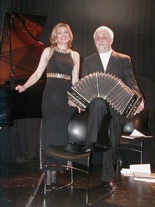 Daniel Binelli is a world-renowned bandoneÛnist and composer, who once toured with Astor Piazzolla and his New Tango Sextet. He has recorded over 30 CD's related to tango music and originally made his debut with Osvaldo Pugliese's Orchestra in 1968, with whom he worked for 14 years. Polly Ferman is also an internationally known pianist, trained in classical repertoire. She is a leading interpreter of the music of the Americas and has recorded extensively. Juan Lazaro Mendolas is Bolivian born, but lived for many years in Mendoza, Argentina. He creates and develops improvisational music, reminiscent of indigenous music of the Andes.