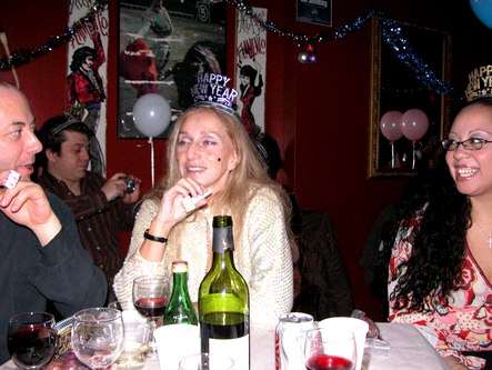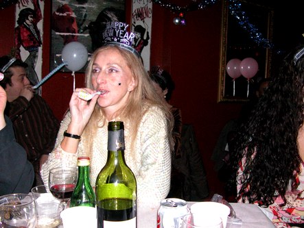 It started with a spectacular as usual performance by Nelida Tirado at Alegrias (La Nacional at 239 West 14th Street, www.alegrias.com). Her flamenco was smooth, sensual and forceful. She lights up the room when she smiles. She was partnered by Jorge Navarro, and accompanied by Rafael Brum on guitar and Luis Vargas on vocals. At midnight, there was a champagne toast, plus twelve grapes. It is a Spanish tradition to eat twelve grapes at midnight on New Year's and make twelve wishes as you eat them. The event was generous with food and good will. After midnight, Jorge put on Merengue and Salsa. People from Venezuela and Michigan and elsewhere danced until two in the morning. There are some flamenco people who don't social dance, but I am working on them. Supposedly Jorge is going to be offering Salsa after the Flamenco on a regular basis sometime in the new year. It would make for the perfect intimate blend of performance and social dance.