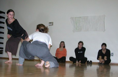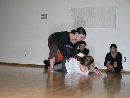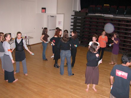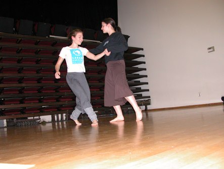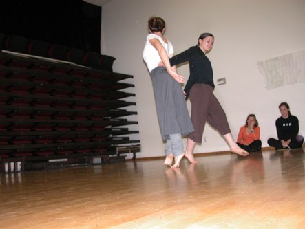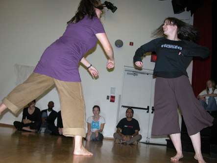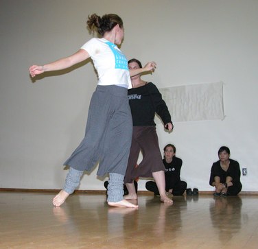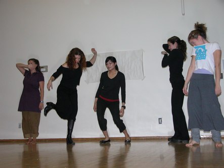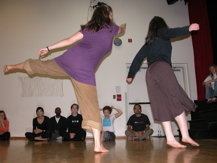 Today I attended Notes in Motion's open workshop. They started with an icebreaker exercise where each attendee was given a card with a body part written on it. The object was to introduce yourself to other people using a motion of that body part. This was followed by dance improvisation using the assigned body parts. The audience was welcome to participate. Then they had the audience brainstorm ways in which one's life can be disturbed, such as marriage and getting in people's way. Two pairs of dancers choose an item from the list and improvised a dance representation of that idea. One person in the audience wrote about what she saw in the dance and another person wrote about what she felt from viewing it. The dancers then danced while the writers read. This helped Amanda, the choreographer and Notes in Motion's artistic director, get ideas for her next work. Finally, an excerpt from a new work in progress was performed. The audience was invited to comment on what they saw in the work. I saw kids playing with chalk in a schoolyard, reminiscent of a passage in Cedar Lake's Seed. Other people saw Charlie's Angels. After the performance, there was a reception with tea and scones. Notes in Motion's open workshop opens a window on choreographers' process of developing new works. They proved themselves to be a very accessible modern dance company. It will be very interesting to see their work once it is finished and polished.