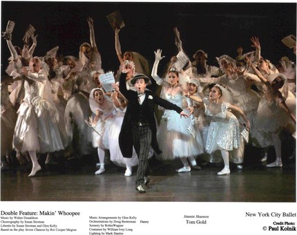 Makin' Whoopee: Music by Walter Donaldson, Choreography by Susan Stroman, Libretto by Susan Stroman and Glen Kelly, Based on the play Seven Chances by Roi Cooper Megrue, Music Arrangements by Glen Kelly, Orchestrations by Doug Besterman and Danny Troob, Scenery by Robin Wagner, Costumes by William Ivey Long, Lighting by Mark Stanley, Performed by Tom Gold as Jimmie Shannon, Alexandra Ansanelli as Anne Windsor, Albert Evans as Joe Doherty, Seth Orza as Edward Meekan, Arch Higgins as Garrison, Students from School of American Ballet, and the Company, including Saskia Beskow (Danskin Spokesperson).