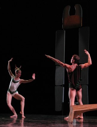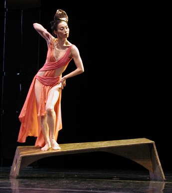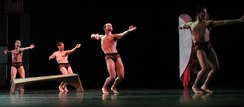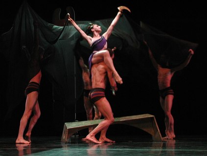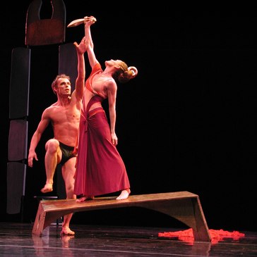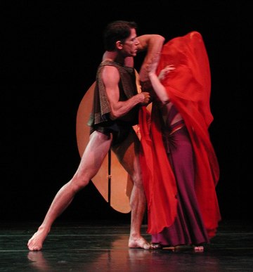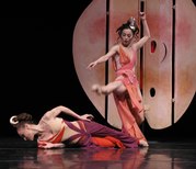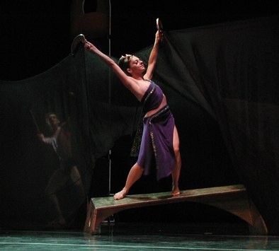Phaedra is a tale of unbridled desire. In Greek mythm, Phaedra is the daughter of Minos, King of Crete, and Pasiphae who was cursed by Poseidon to lust for a bull and conceive the Minotaur. Stepmother to Hippolytus, the youthful son of her aging husband, King Theseus, Phaedra's desire for the rejuvenating powers of youth make her vulnerable to a passion that lures her into the deceit that will eventually destroy her house. Martha Graham's Phaedra envisions its human protagonists as pawns in a rivalry between the gods. Aphrodite, Goddess of Love, desires Hippolytus, but he prefers the chaste Artemis, Goddess of the Hunt. Jealous, Aphrodite takes her revenge by planting in Phaedra an uncontrollable desire for her step-son. At the pitch of her lust, she chooses to lie, even as she sees, in a nightmare vision of the past and of Pasiphae's debauched passion, the precursor to her own tragedy. Believing Phaedra's lie, Theseus drives his own son from the kingdom and thus to his death, while shamed and desperate, Phaedra takes her own life.