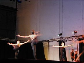 Kinesis: Music is Sinfonietta by Jan·cek. Choreographed by Milton Myers, using Lester Horton technique, I saw dancers leaping in elongated arabesques, almost in mirror images. The intoxicating music had hints of a flowing river, and these muscular dancers were adept in percussive, acrobatic movement. At times, they appeared as galloping stallions, with female dancers exhibiting an equally demanding physicality. The black unitards enhanced the often stark and dynamic nature of this ballet.