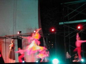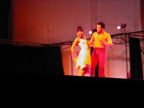 Suite Otis: Music is by Otis Redding. Choreographed by George Faison, this solidly Bluesy ballet is illustrated with vibrant pink, flowing dresses, with black floral shawls. Male dancers sport pink shirts, and the dancing is sexy and sassy. Satisfaction had a revival quality, and Try a Little Tenderness included passionate leaps with superb elevation, and interesting lighting effects. Dancers exuded a tremendous level of energy and enjoyment.