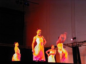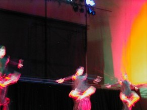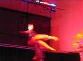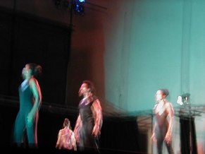 Gatekeepers: ("A story of homage, celebration and an acknowledgment of conscious continuity, interconnectedness, history, tradition, and perseverance.") Music is by Wunmi Olaiya. Choreographed by Ronald K. Brown, this electric rock ballet presented cartwheels and Martha Graham-like contractions and releases. Duos and trios, in black leotard costumes, exuberantly celebrated their intense muscularity and flexibility. A tribal quality was displayed in this most complicated, but connected, choreography.