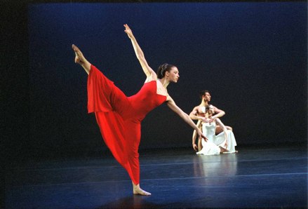 Snezana Adjanski as The Woman in Red, Jeffrey Smith and Ritza Mavrokefalou as The Couple in White in the Martha Graham School Ensemble's presentation of Martha Graham's "Diversion of Angels"